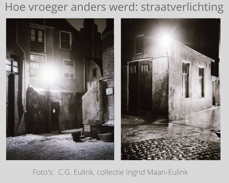 Kees Eulink werd in de jaren vijftig van de vorige eeuw lid van de Culemborgse fotoclub. Samen met zijn vriend, de Culemborger Otto Weijsenfeld, trok hij Culemborg in om unieke hoekjes in beeld te brengen. Ze lieten zich inspireren door de opdrachten die ze meekregen. Straatverlichting was kennelijk één van die opdrachten.
