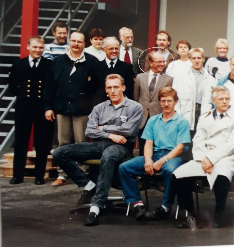 In 1989 ging hij op cursus in Liverpool. Alleen van dat uitstapje zijn er foto’s in zijn archief. Het is jammer dat ik niet weet wie er allemaal op de foto staat, maar ik heb het vermoeden dat ‘Beltgens’, Du Chatinier en ‘Van Eerden’ er wel bij staan. De mannen met de grijze baardjes komen mij heel bekend voor. In die tijd werden alleen de achternamen gebruikt als je over je collega sprak, maar thuis sprak vader ook wel over ‘Bertus’, ‘Emiel’ en ‘Fred’. De laatste twee kwamen in zijn latere jaren erbij en waren de ‘jonkies’.
